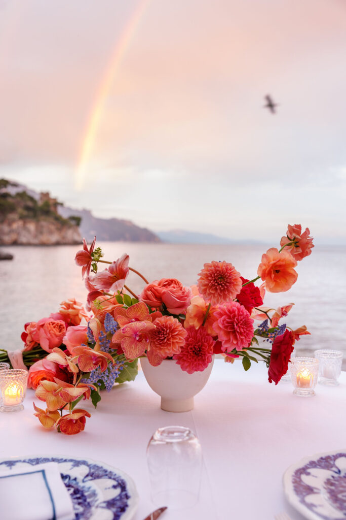 The planning was orchestrated by my wife Michelle Durpetti of Michelle Durpetti Events, ensuring every moment was flawlessly executed. The enchanting location of Borgo Sant’Andrea on the Amalfi coast provided the perfect backdrop for this wedding. At sunset after a short rain shower, a rainbow appeared at just the right moment. Clearly this was a sign of a really beautiful marriage taking place.